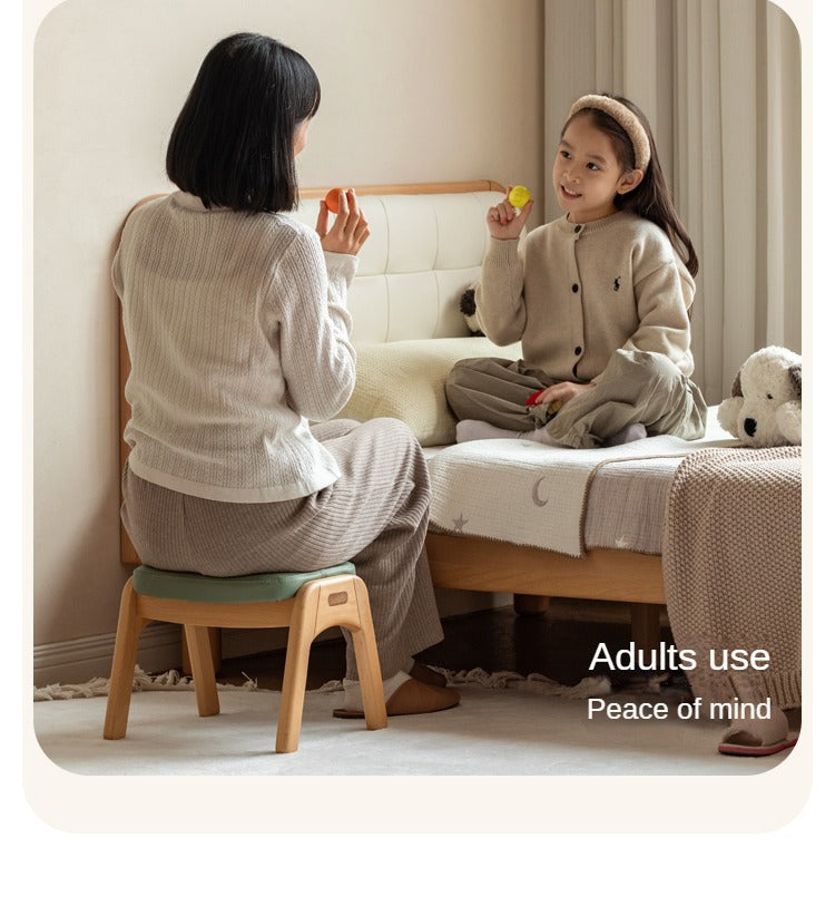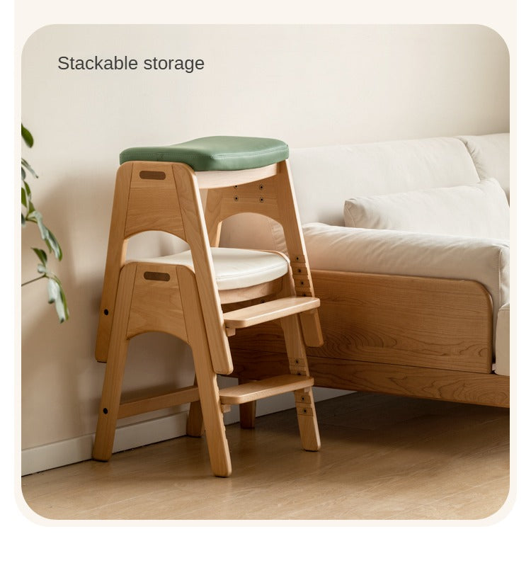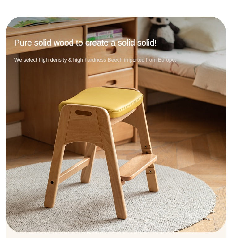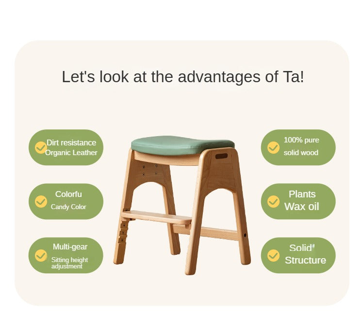 Beech Solid Wood Adjustable Children Study Chair with Leather Seat & Stackable Design in Olive Green Milky White Lemon Yellow