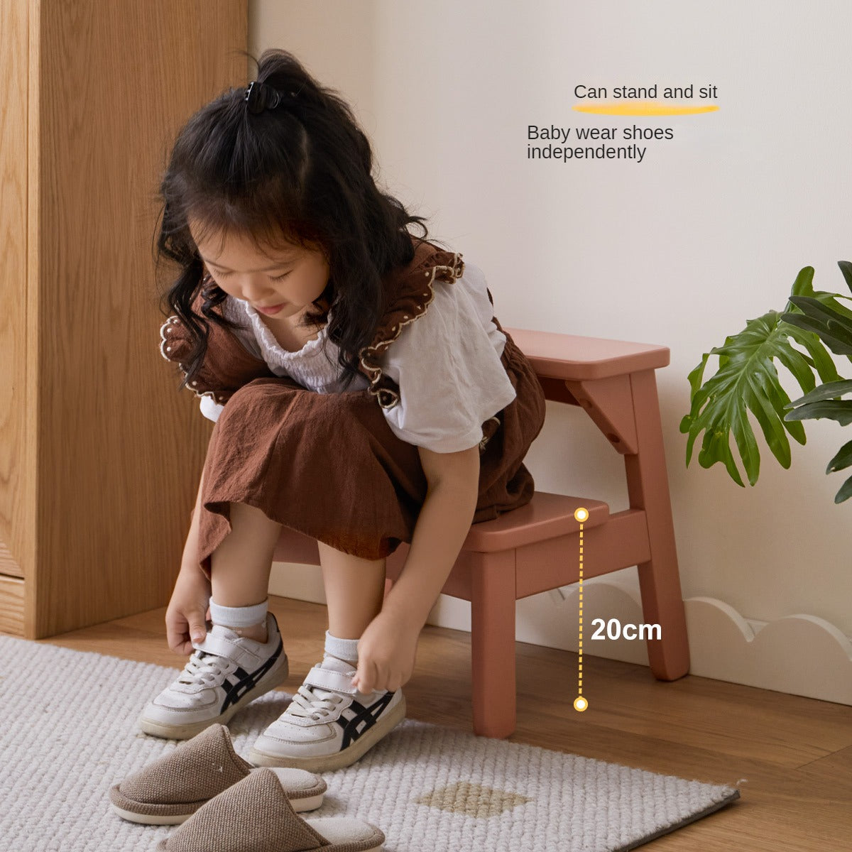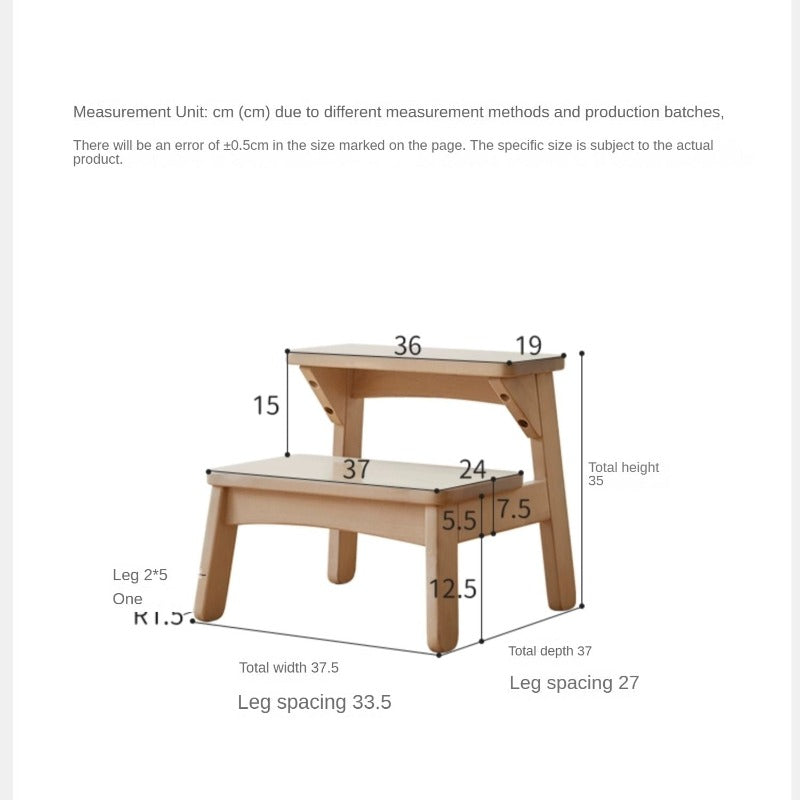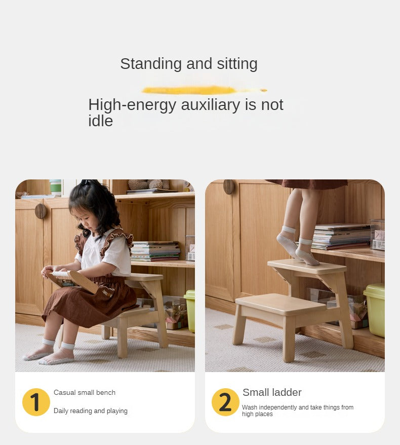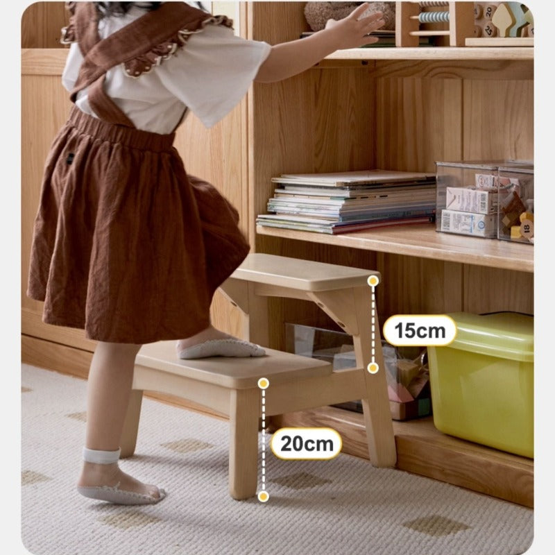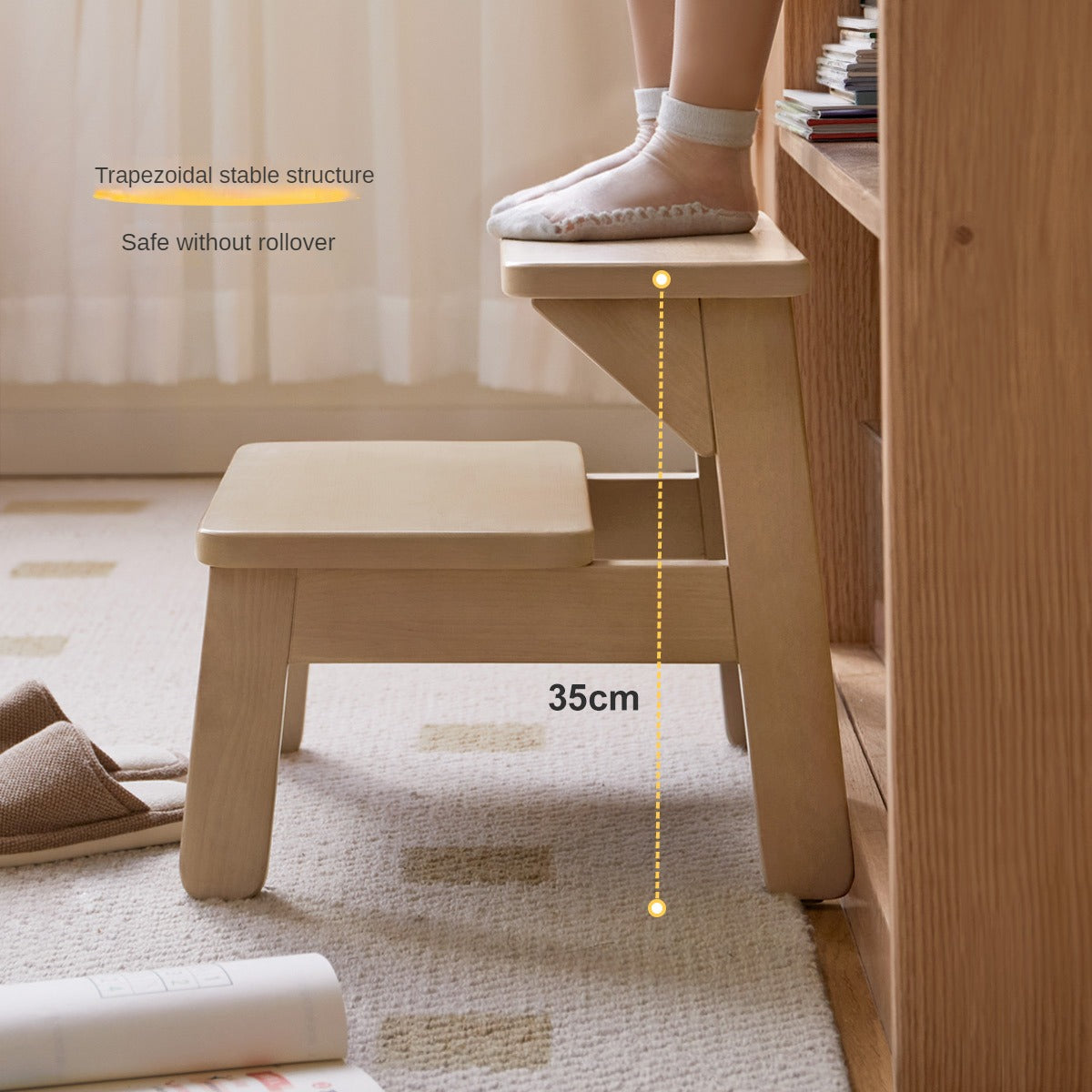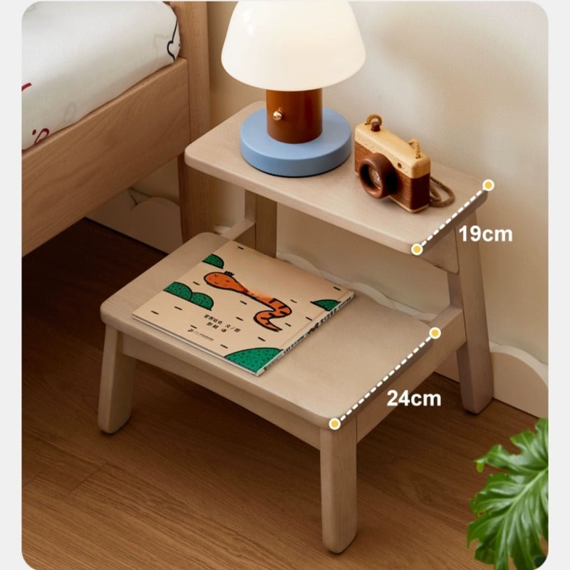 This compact stool transitions seamlessly from a foot rest to a step stool, mini chair, or side table, meeting a range of household needs. Its stable trapezoidal four-legged construction and widened pedal surface make climbing and sitting safe at every angle. The carefully rounded 360-degree edges ensure the surface is soft to the touch and free from splinters, protecting little hands and feet. Anti-skid felt pads on the base provide strong grip, preventing slips and safeguarding your floors.