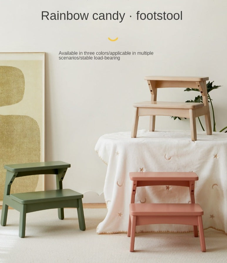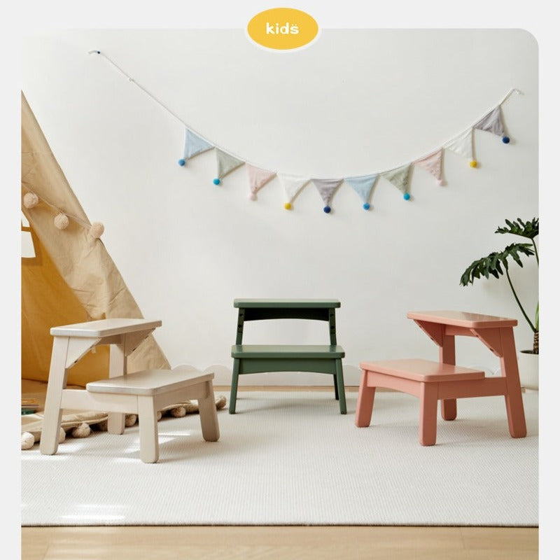Birch Solid Wood Kids Multifunctional Foot Stool Step & Side Table in Berry Powder & Wizard Green