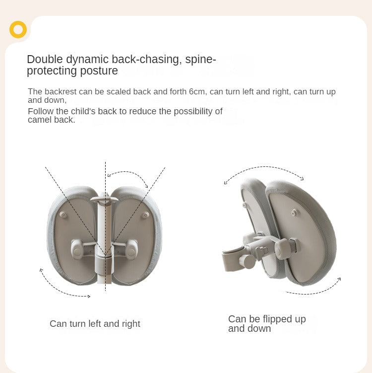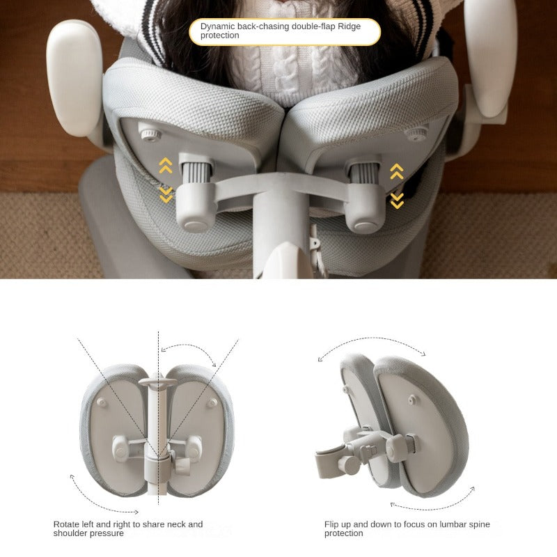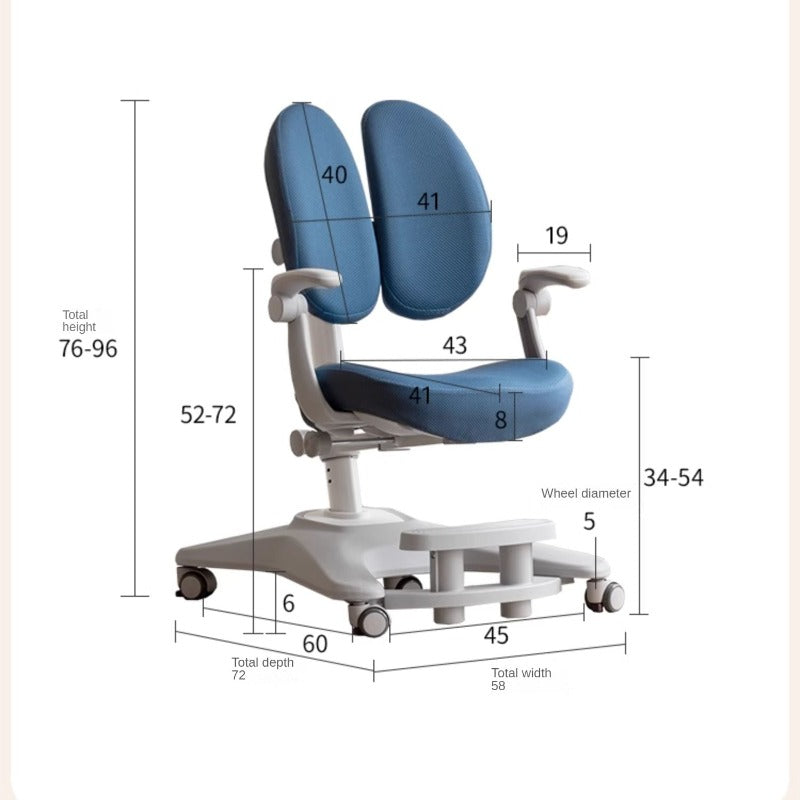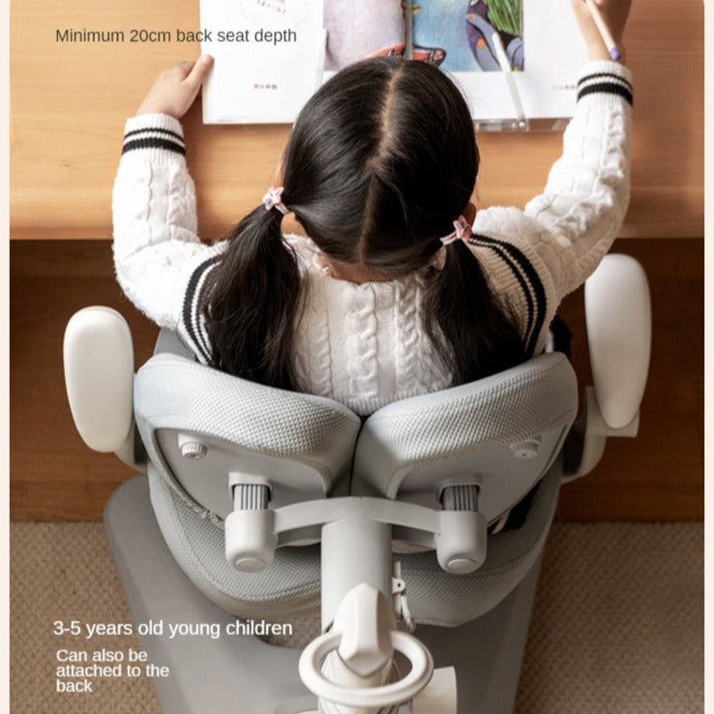 The height-adjustable seat easily extends from 76cm to 96cm, accommodating children of various ages and ensuring an ergonomic fit. The multi-dimensional backrest enables back-and-forth, side-to-side, and up-and-down adjustments, encouraging proper posture and supporting the spine’s natural curvature.