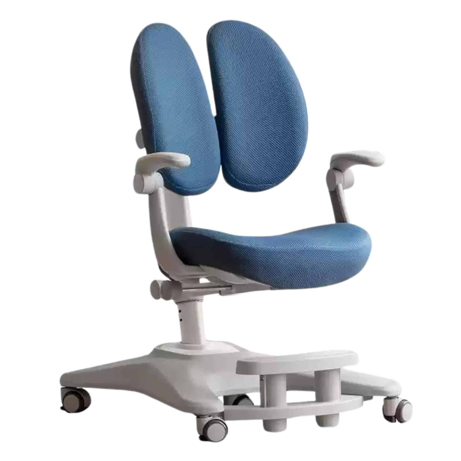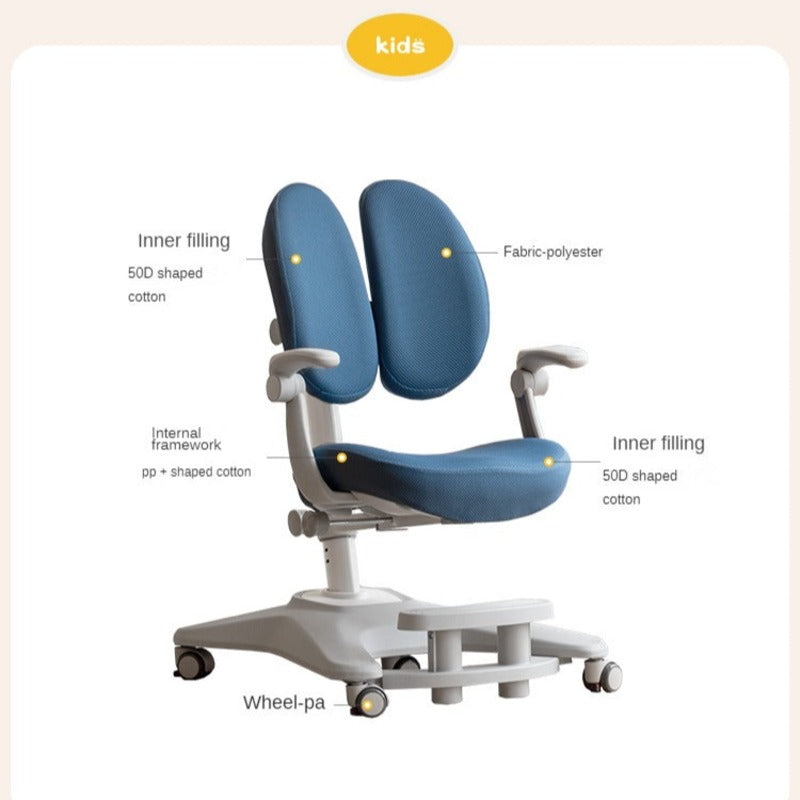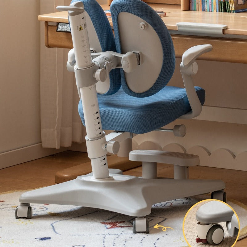 A saddle-shaped seat filled with high-density 50D elastic sponge delivers comfort during long study sessions. Rotatable armrests adjust from 0 to 90 degrees, offering support and saving space when needed. The adjustable foot pedal creates a customized sitting experience for growing students.