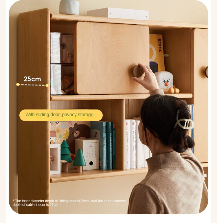 The combination workspace includes both a desk and an elevated open bookcase, allowing easy access to books while keeping the desktop clear for writing or creative projects. Thoughtful storage solutions abound: a spacious bottom drawer cabinet provides ample room for toys or school supplies, adjustable inner shelves allow customized organization, and a privacy sliding-door compartment protects important items. An integrated charging hole keeps devices powered and cords organized, supporting homework and learning with modern convenience.