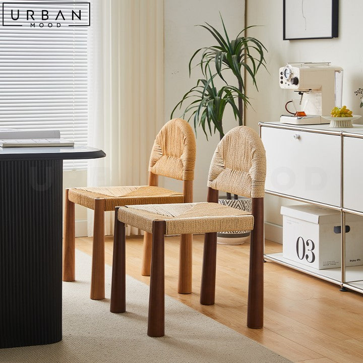 Discover the perfect blend of rustic charm and modern elegance with our JURAD Japandi Solid Wood Dining Chair. Expertly crafted from durable rubber wood, this chair boasts a unique rope weave backrest and seat, adding a distinctive texture to your dining or lounge area. The rounded backrest design introduces a gentle, soft touch, making it an inviting addition to any space.