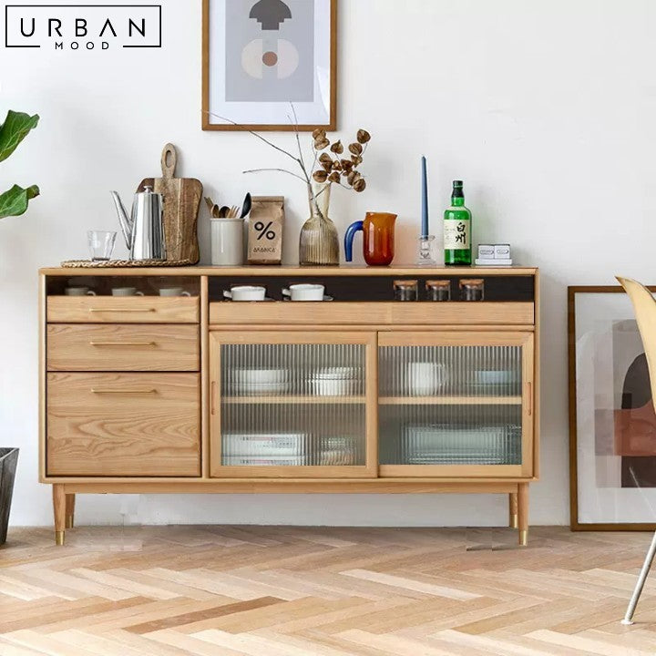 Elevate your home decor with the MARILEE Mid-Century Solid Wood Sideboard. Handcrafted from durable pine wood, this sideboard is enhanced with your choice of rattan or glass details, bringing a touch of vintage charm to any space. Its retro-inspired design seamlessly blends style and practicality, offering ample storage space to organize your belongings. Perfectly suited for the dining room, living area, or hallway, the MARILEE Sideboard is a versatile addition that adds warmth and character to your home. Upgrade your storage solutions with this timeless piece of furniture.