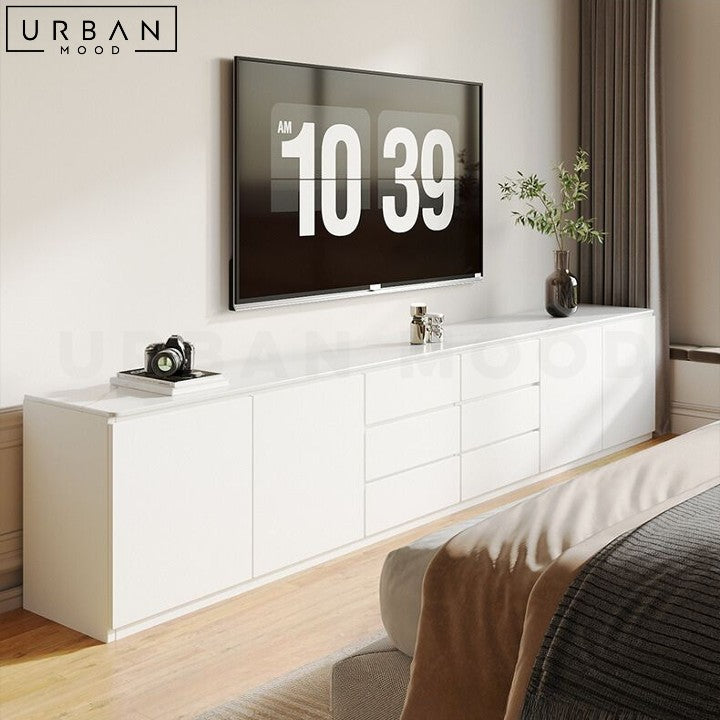 Featuring ample storage, the ROELS TV Console provides a practical solution for organizing your media essentials. Whether it's your TV, gaming consoles, or accessories, everything finds its place, ensuring a clutter-free environment. This console not only enhances the modern appeal of your living room but also brings functionality to the forefront.