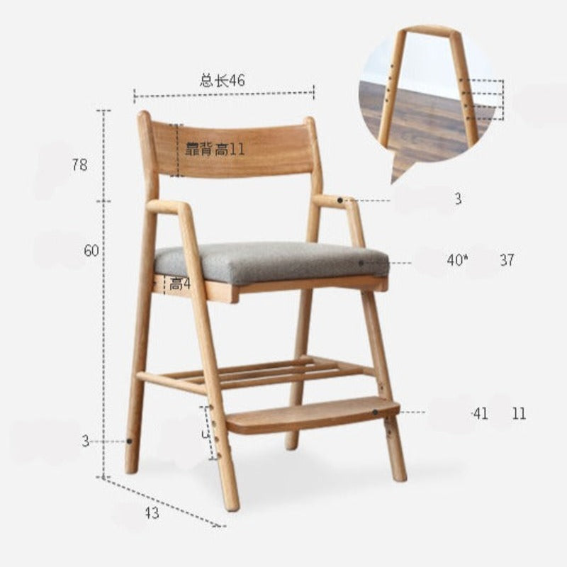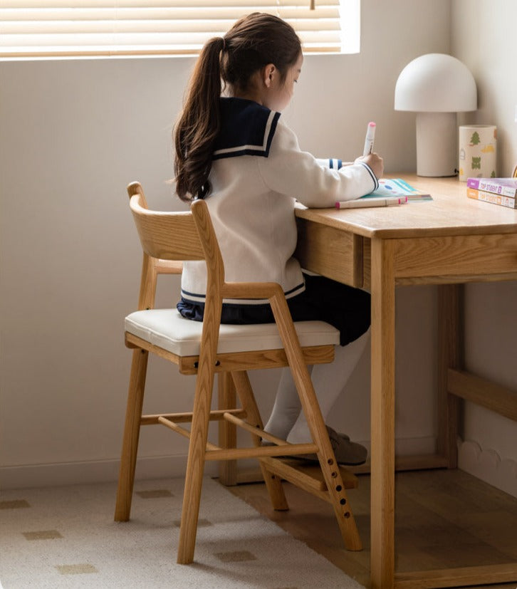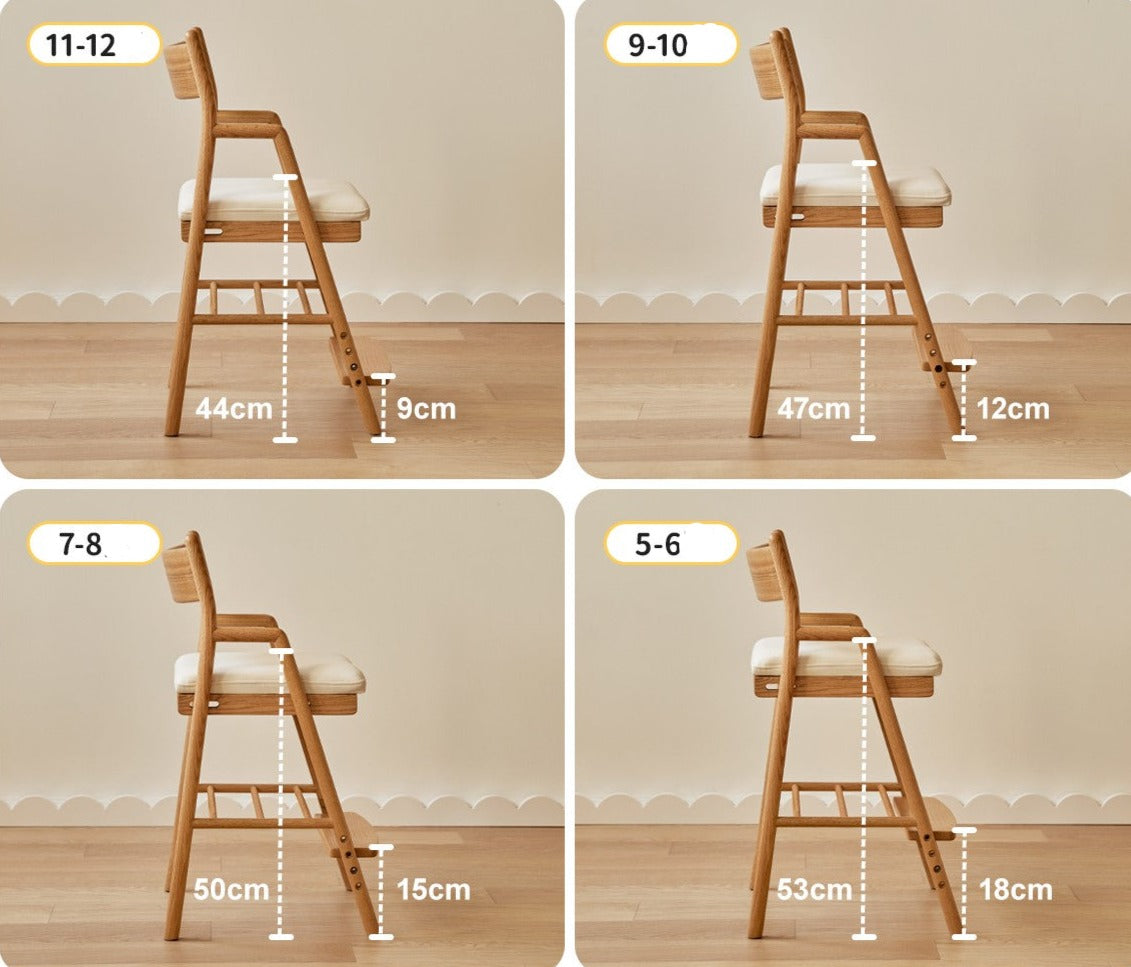 Bring timeless style and lasting comfort to your child's learning space with the Oak Solid Wood Kids Chair Height Adjustable. Expertly crafted from premium 100% FAS grade oak sourced from North America, this chair showcases natural wood patterns, a smooth finish, and exceptional durability. The supportive seat plate is crafted from imported New Zealand pine, ensuring reliable strength for daily use.
