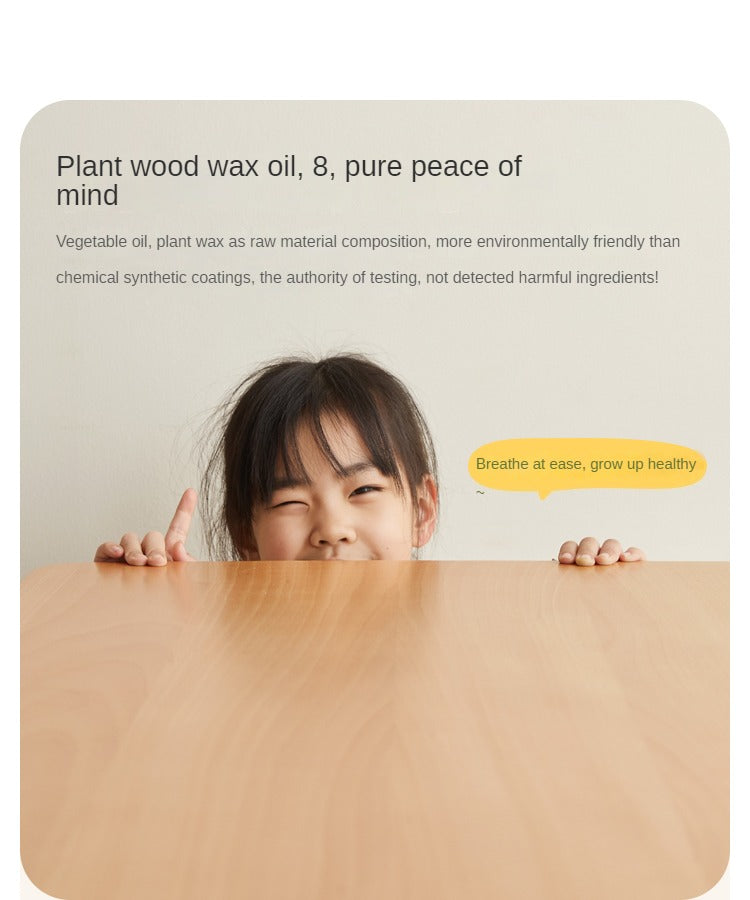 The desk is finished with a plant-based wax oil, derived from natural ingredients and free from harmful chemicals. This environmentally friendly coating not only protects the wood but also creates a safe workspace for your child, supporting both their health and the planet.