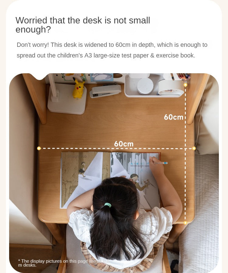 The elevated double-layer upper shelf allows for efficient vertical storage, putting essential books and study materials within easy reach. A customizable removable hole plate gives your child flexibility for organizing supplies according to their needs. The desk features rounded edges, making it safe for children to use, and avoids sharp corners for added peace of mind.