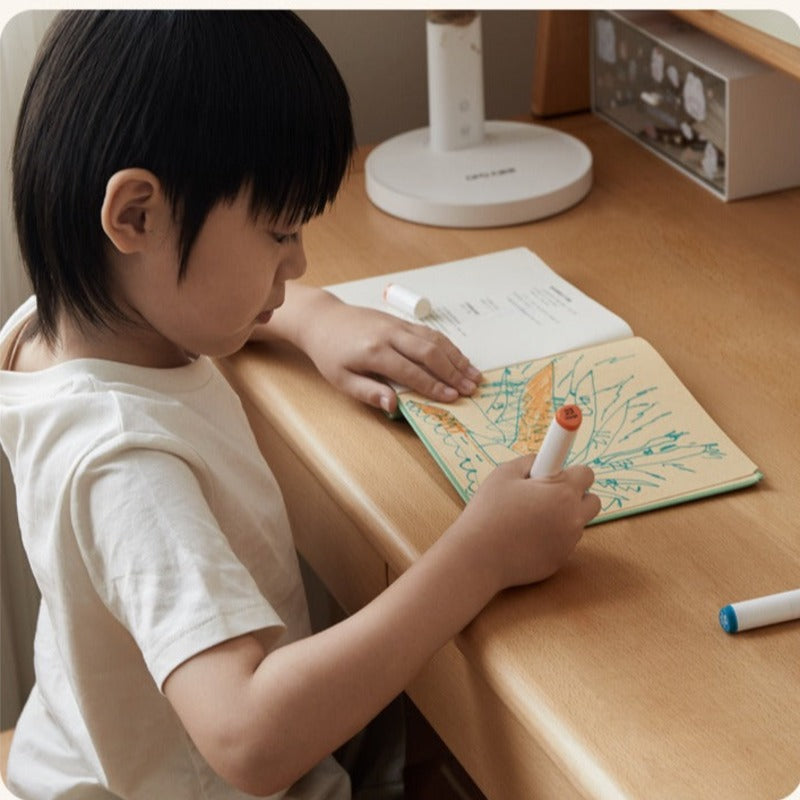 Functionality meets thoughtful design with four adjustable height settings, accommodating children as they grow (up to 24.5cm adjustment). The cleverly designed back-fit legs ensure reliable stability, so the desk remains steady during study or creative sessions. Ample under-desk space allows comfortable leg movement, while the flexible double-drawer system keeps books, stationery, and supplies organized and within easy reach.