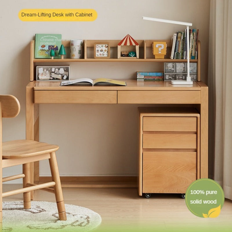 Beech & Oak Solid Wood Childrens Desk Natural Adjustable Study Table with Drawers Eco Friendly Design