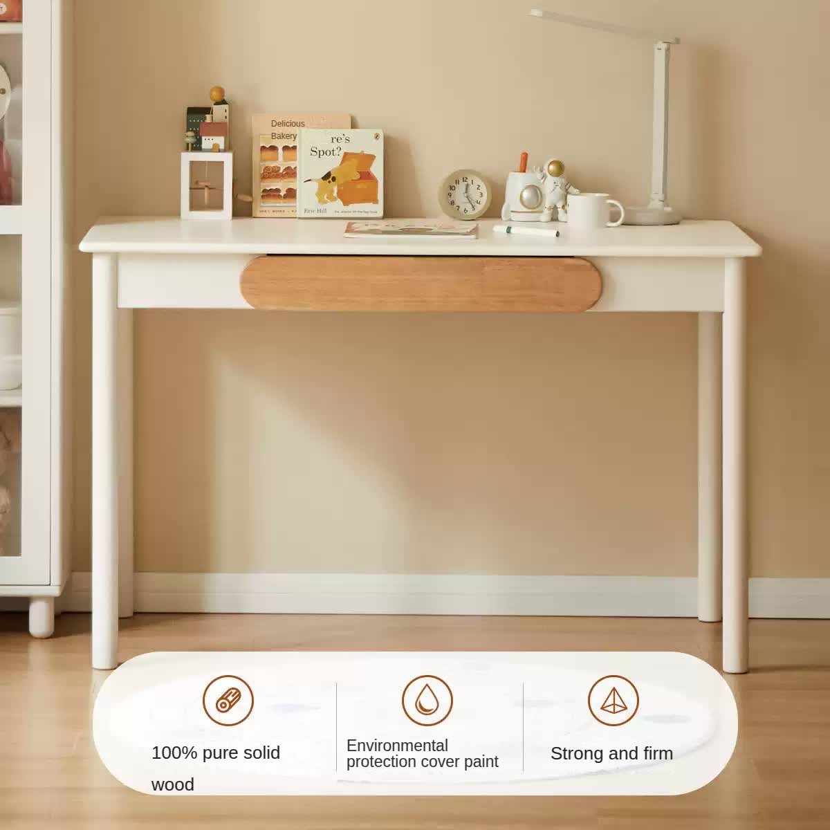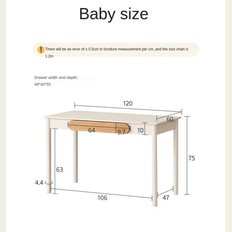 Discover the perfect combination of timeless design and functional utility with the Solid Rubber Wood Cream White Children's Writing Desk. Crafted from 100% pure solid rubber wood, this desk offers exceptional durability and a quality you can trust. The cream white finish brightens any space, making it an ideal piece for bedrooms, study areas, or creative nooks. Delicate log-colored accents on the legs and drawer handles add a subtle yet elegant touch, blending seamlessly with a range of home interiors.
