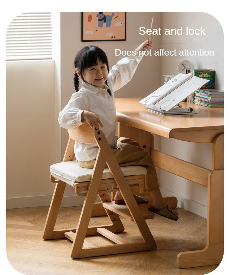 Beech Solid Wood Kids Adjustable Study Chair – Green Leaves