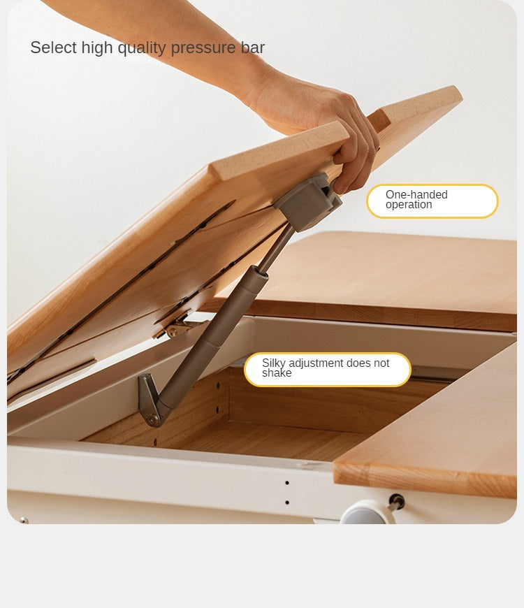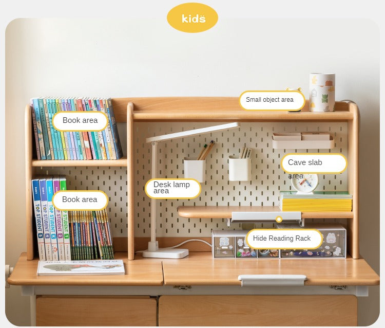 Functionality meets organization with a spacious upper shelf and multiple storage compartments tailored for books, stationery, and personal items. A removable reading rack keeps reading materials accessible, while the wide desktop surface provides abundant space for writing, crafting, and digital learning. The included TPU leather desk mat protects the surface from spills and creative wear, remaining easy to clean and maintain.