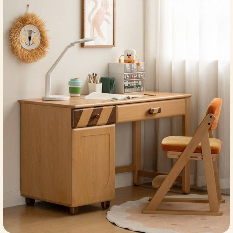 Beech Solid Wood Childrens Study Table Natural Finish with Bookcase & Storage for Kids Room or Learning Space
