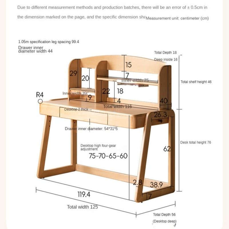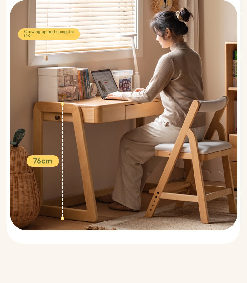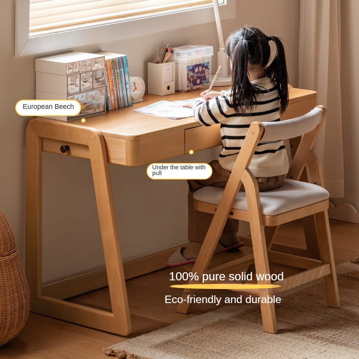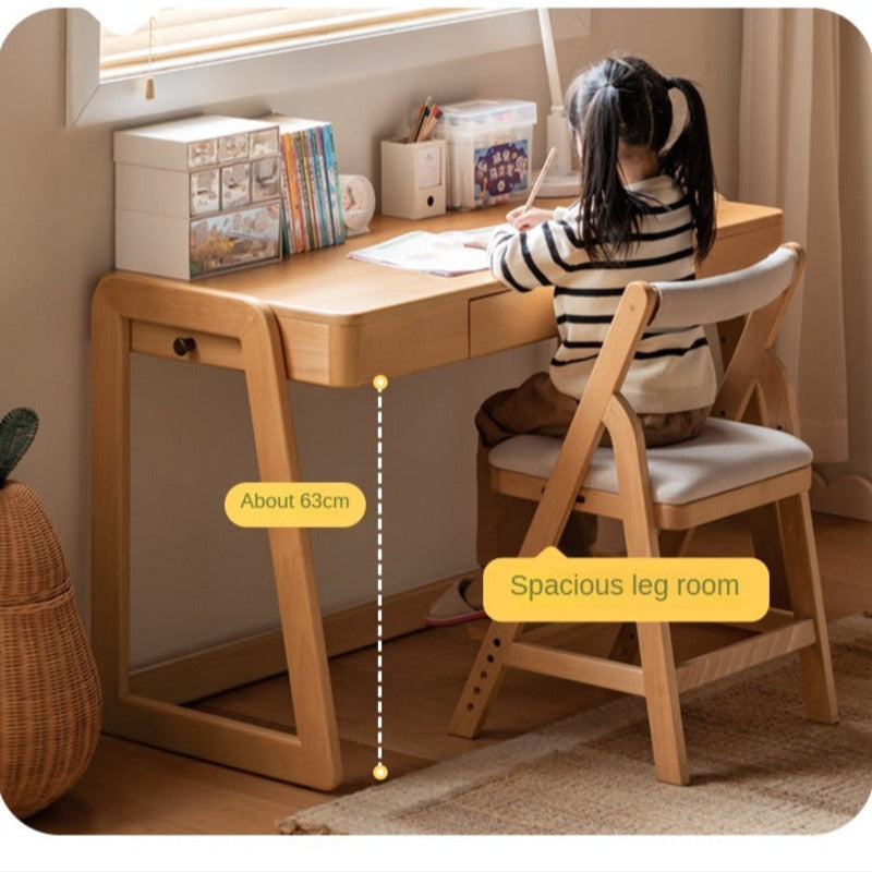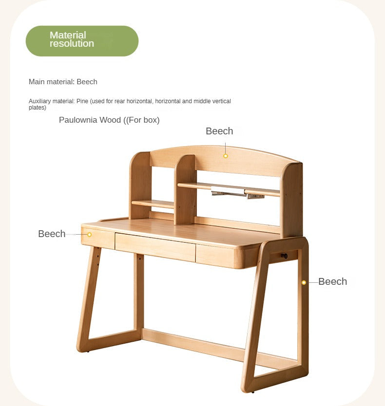 Upgrade your child’s learning environment with the Beech Solid Wood Children’s Study Desk. Crafted from premium European beech wood, this study table combines strength, durability, and a warm natural finish for a welcoming, elegant look in any space. Supporting materials include New Zealand pine for stable rear beams and vertical supports, and paulownia wood for lightweight, robust drawers. Each wood selection offers exceptional durability while maintaining a lightweight, child-friendly structure.