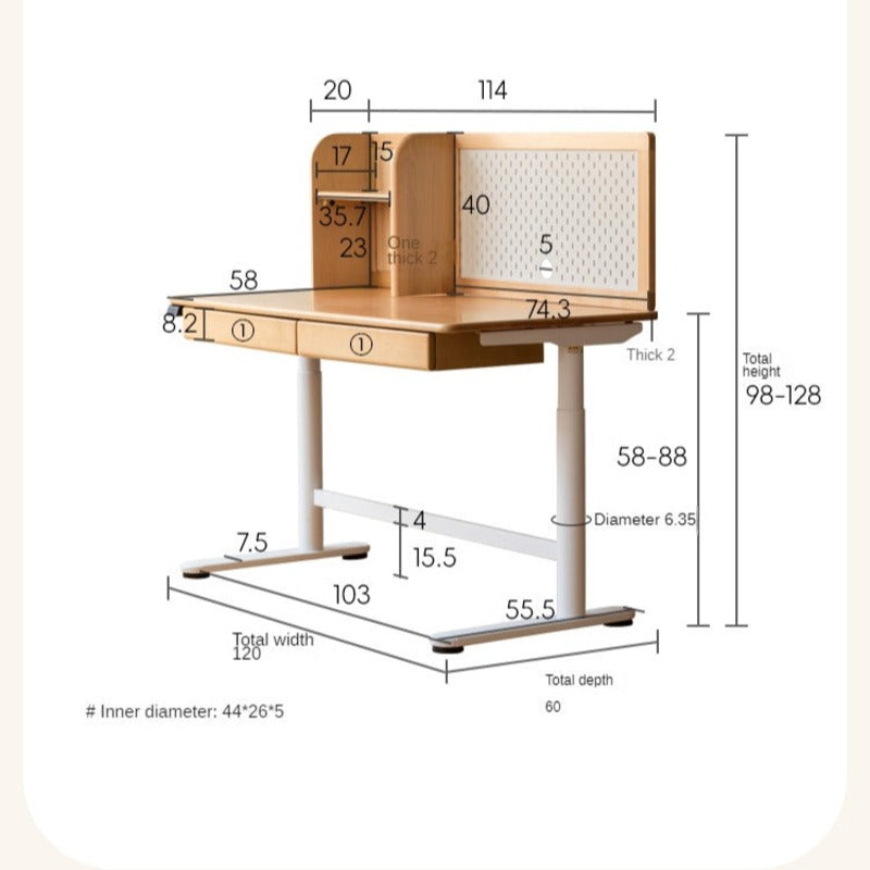 The intuitive electric lifting mechanism allows you to adjust the table height between 58cm and 88cm, accommodating your child's posture and comfort over the years. The quiet operation of the height adjustment (≤55dB) ensures a smooth transition without disturbing concentration. Built on a reinforced carbon steel leg frame with a substantial 2mm wall thickness, this desk is exceptionally stable and durable for everyday use.