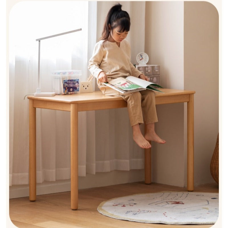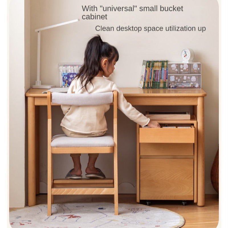 Beech Solid Wood Kids Writing Desk with Oak Accents & Ample Storage