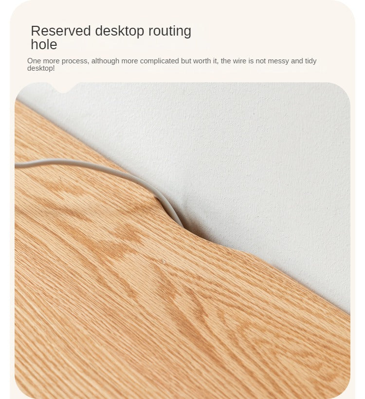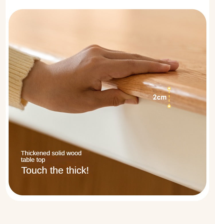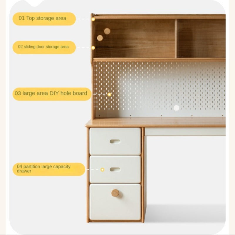 This desk is constructed using only premium solid woods: FAS-grade oak for the main structure, liriodendron for the surface and apron delivering both toughness and a fine texture, paulownia wood for cabinet backing, and New Zealand pine reinforcing lower frames and panels for extra stability. Treated with a plant-based wood wax oil, all finishing is eco-friendly, chemical-free, and safe for children.