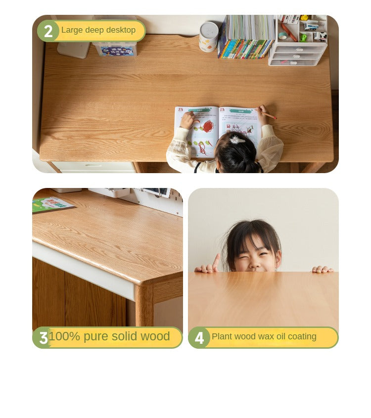 Upgrade your child's study area with the Oak Solid Wood Children’s Study Desk, a thoughtfully designed piece combining modern style with practical storage solutions. Crafted from top-quality FAS-grade North American oak, this desk showcases natural grain patterns and robust durability, making it a smart investment for your home.