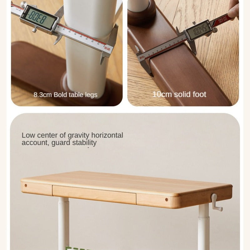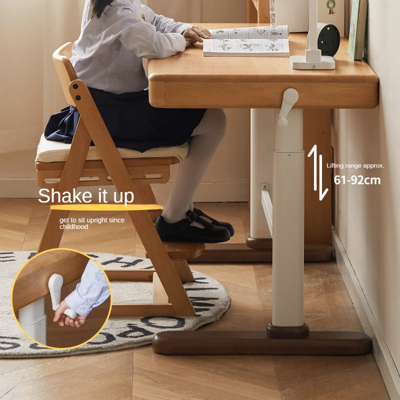 Beech Solid Wood Adjustable Children Study Table Hand Crank Lift Writing Desk Walnut Frame Modern Design
