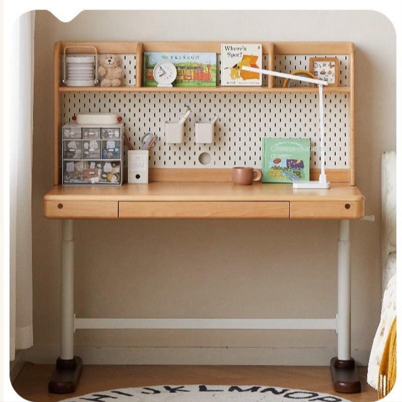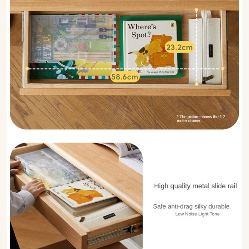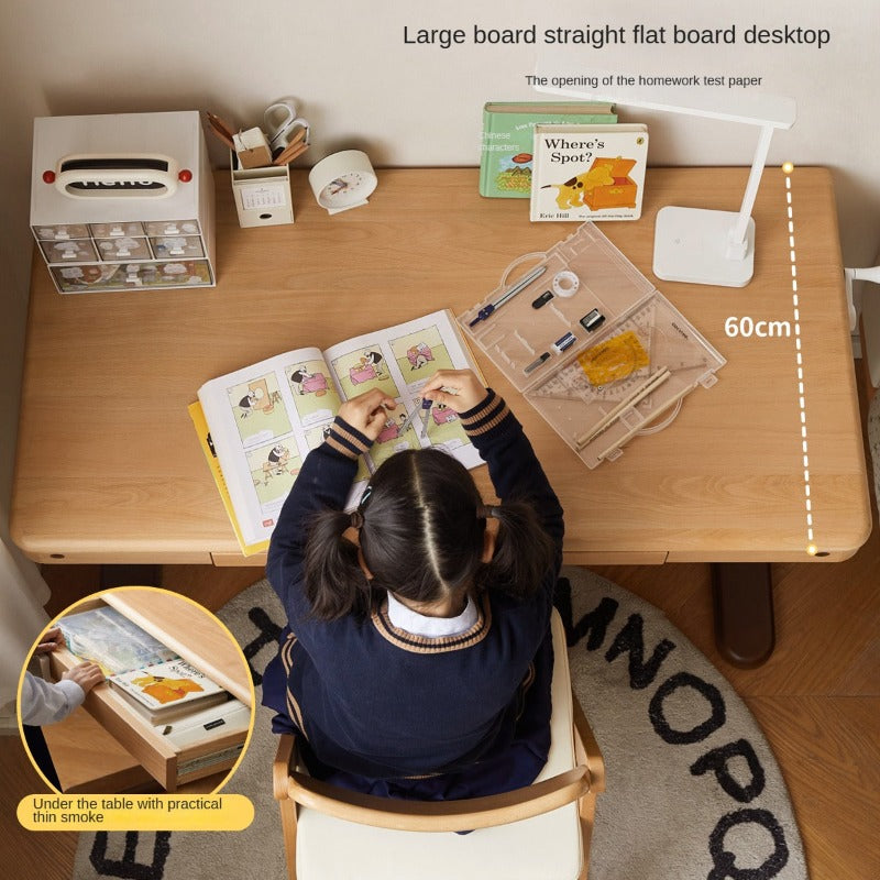 Constructed from 100% European beech solid wood, the table showcases warm hues and a fine, straight grain that adds refined elegance to any setting. The use of Paulownia wood in the box drawers delivers corrosion resistance and long-term reliability, while New Zealand pine in the structural boards enhances toughness and prevents warping. These select woods not only ensure longevity but also bring a sense of timeless quality to your child's workspace.