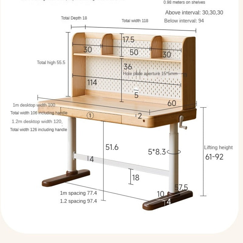 • 39-3x23-6x45-6-57-8-inch-100x60x116-5-147-5cm-natural-wood-color-childrens-hand-operated-study-table-childrens-shelf