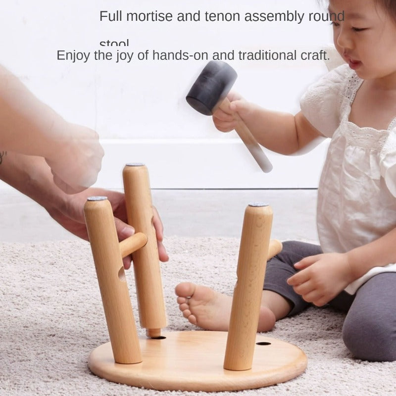 The stool’s Nordic-inspired round seat and legs provide a minimalist yet inviting look. Its smooth edges and rounded corners ensure safety for children and adults alike, making it especially suitable for use in family spaces, playrooms, living rooms, or educational environments. The full wood structure contains no nails or screws, and the eco-friendly wood wax oil finish delivers a non-toxic, child-safe surface that is gentle on the skin and free from harmful chemicals.