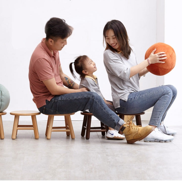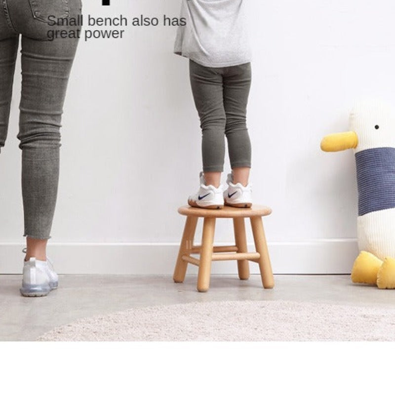 Oak & Beech Solid Wood Small Stool Nordic Round Design Natural Colors for Kids & Home