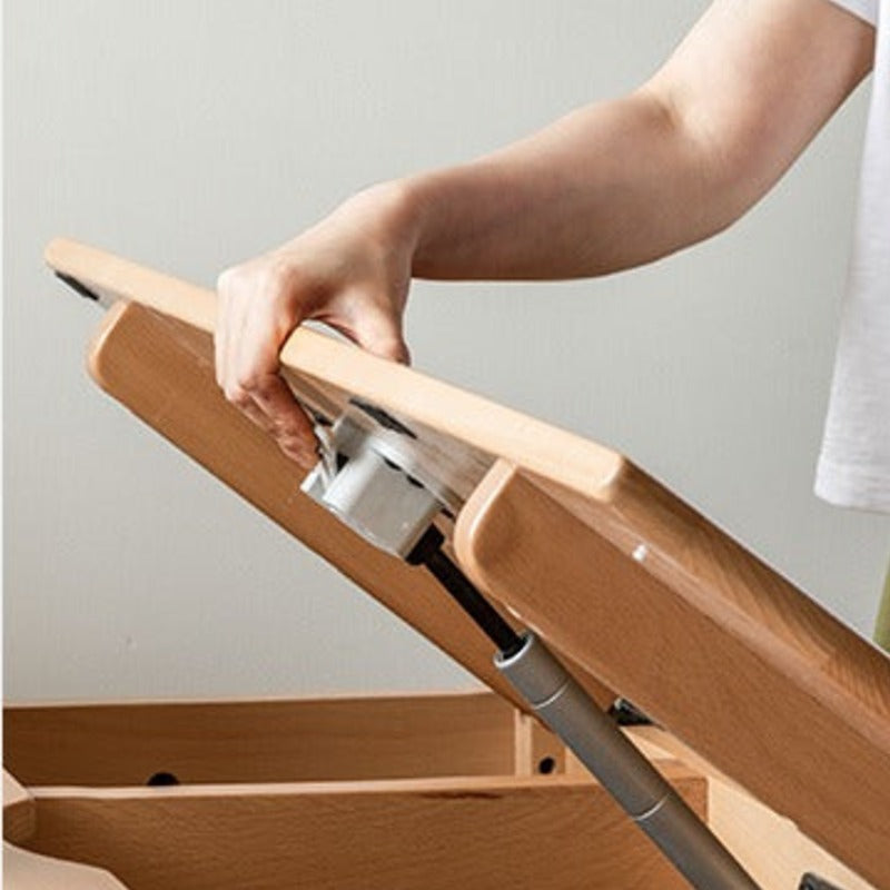Give your child an inspiring study space with the European Beech Solid Wood Adjustable Kids Study Desk. This thoughtfully crafted desk is made from premium European beech wood, highlighted by its warm natural tone and smooth, consistent grain. Blending elegant simplicity with practical features, this liftable desk is designed to support your child's learning and growth for years to come.